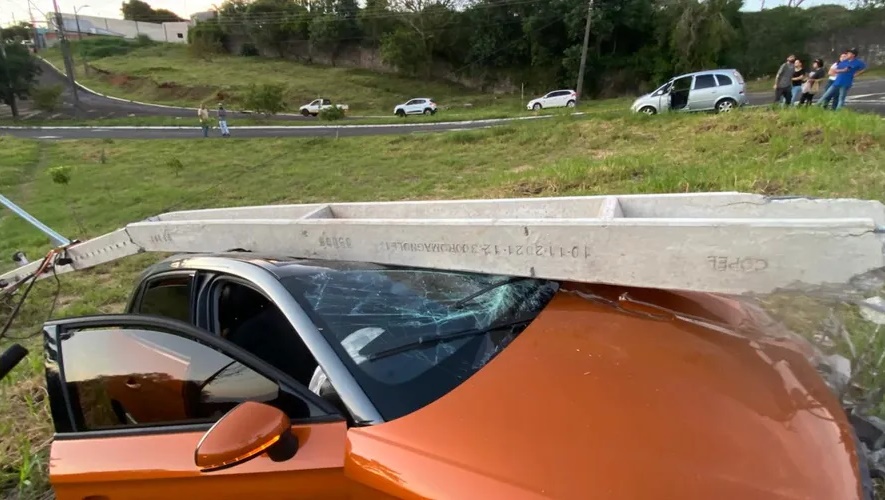 De acordo com informações apuradas no local, a vítima havia acabado de buscar o filho na escola quando foi surpreendida pelo ex-companheiro. Utilizando a caminhonete, o suspeito passou a empurrar o carro ocupado pela mulher e pela criança. Durante a perseguição, o veículo acabou colidindo e derrubando um poste.