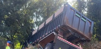 Caminhão colide contra árvore na PR-445 entre Tamarana e Londrina
