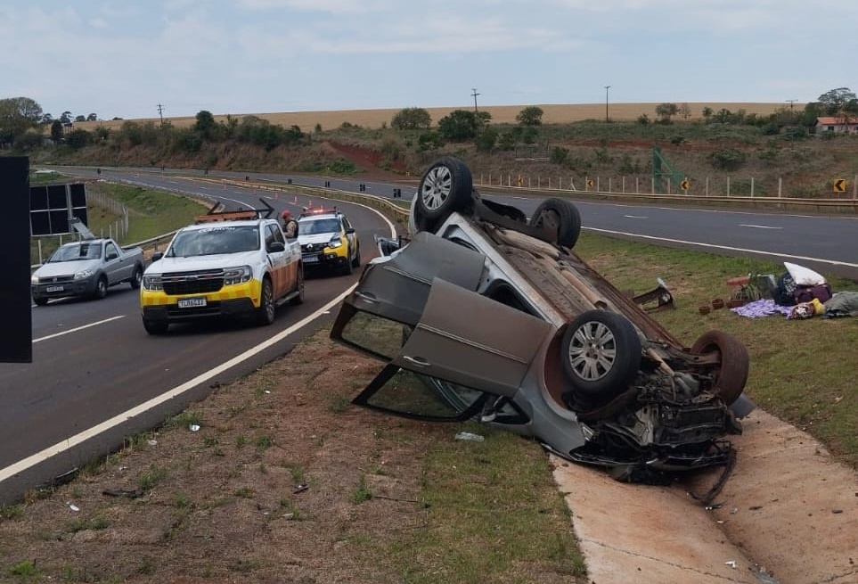 Um capotamento foi registrado na manhã desta sexta-feira (10), por volta das 10 horas, na PR-445, no quilômetro 24 + 450 metros, em Tamarana, sentido Mauá da Serra.
