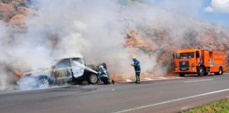 Caminhonete fica destruída após incêndio no contorno de Jandaia do Sul