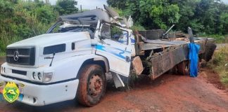 Rio Bom: Acidente com caminhão carregado de soja. Motorista foi encaminhado...