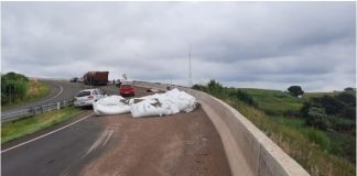 Derramamento de carga interdita alça de acesso a Jandaia do Sul