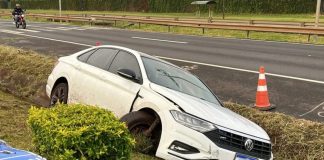 Carro sai da pista e vai parar no canteiro central da...