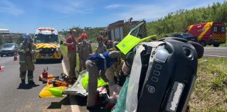Mulher fica ferida após capotamento na BR-376 entre Apucarana e Cambira