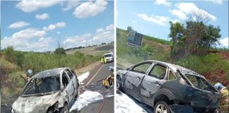 Carro é destruído por incêndio na PR-444 em Apucarana