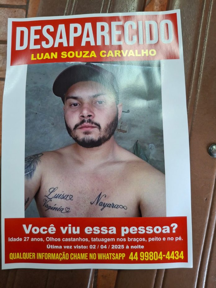 A família de Luan Souza Carvalho, de 27 anos, vive momentos de angústia desde o desaparecimento do jovem, ocorrido na noite de 2 de abril de 2025, em Maringá.