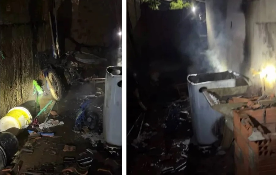 As chamas se alastraram rapidamente, atingindo o beiral e a cobertura lateral da residência. O incêndio foi controlado pela Defesa Civil, porém causou danos à estrutura do imóvel e resultou na perda total da motocicleta. O caso apresenta indícios de ação criminosa.