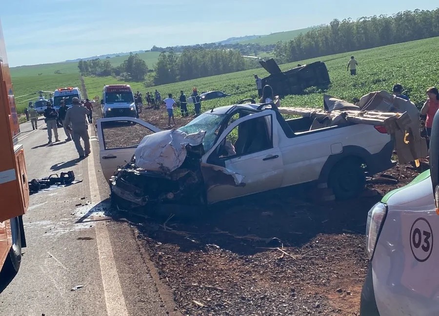 Grave colisão entre Hilux e Strada deixa quatro feridos graves entre Jandaia do Sul e Bom Sucesso