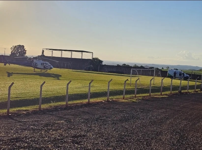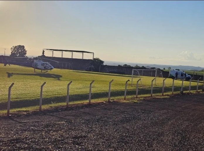 Um helicóptero equipado para atendimento de emergência foi deslocado até o município e pousou no Estádio Municipal, de onde realizou a remoção do recém-nascido para um hospital de referência em alta complexidade neonatal.