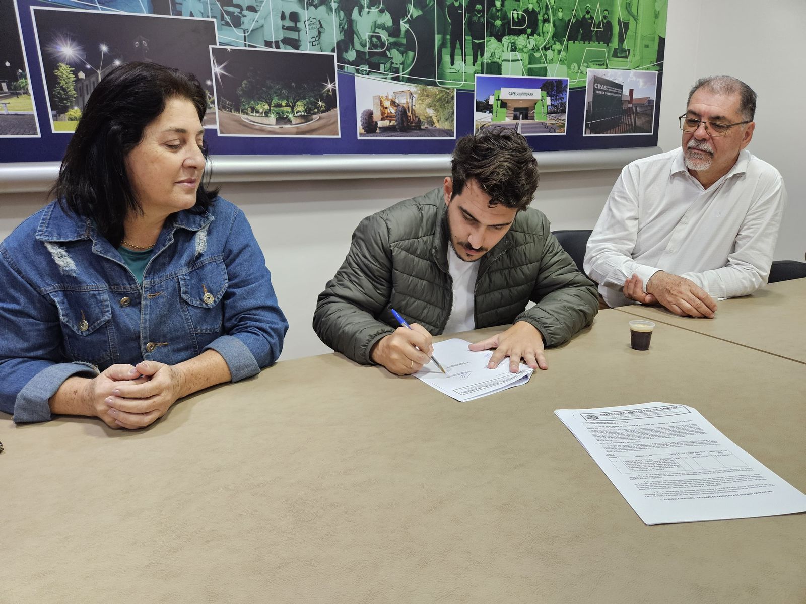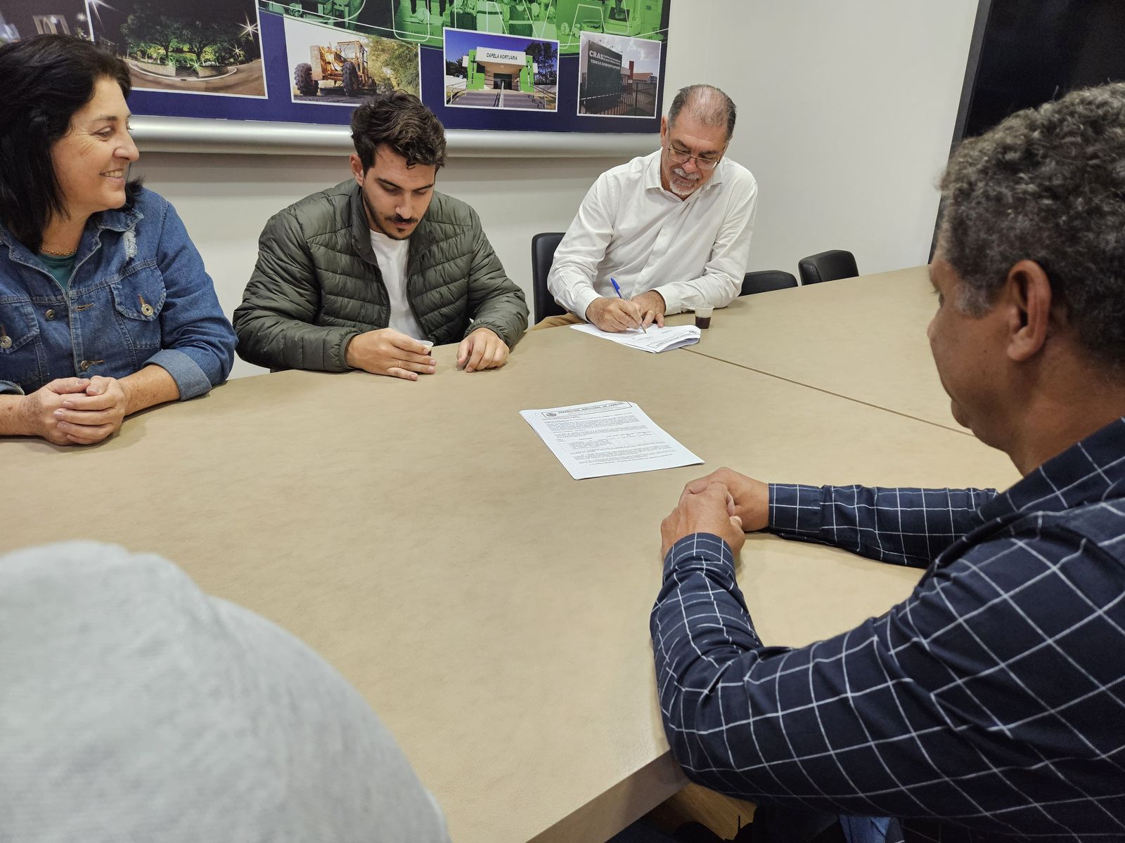 Nesta última segunda-feira (12), a prefeita Ana Lúcia, acompanhada do engenheiro civil Ronaldo Barcala, do secretário de Obras Júlio César Sapatini, do vice-prefeito Ricardinho e do engenheiro responsável pela empreiteira, Cláudio Nunes, assinou a ordem de serviço para a reforma da Rodoviária Municipal de Cambira.